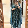 Women’s Cotton Blue Kurti with Floral Print,Anarkali 3pc set Size -XL