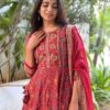 Anarkali Suit Set Women Kurta Set with Dupatta Women’s Embroidery Designer Cotton Anarkali Kurta Pant Dupatta Suit Size-L