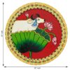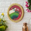 This hand-painted pichwai depicts a sacred cow sitting on a lotus flower. The cow is a symbol of fertility, abundance, and motherhood in Hinduism, and the lotus flower is a symbol of purity and enlightenment. The painting is made with natural pigments on cotton cloth, and it is framed in a traditional wooden frame. This unique piece of art would be a beautiful addition to any home.