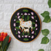This beautiful pichwai painting features a mother cow and her calf nuzzling each other, surrounded by a vibrant array of flowers.