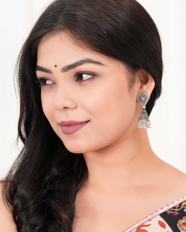 Women’s Indian Traditional AZ838-OXidised Silver Earrings For Women | Elephent Design Jumki Wedding Wear
